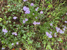 Mistflowers are of the Aster Family. They have soft, fuzzy purple flowers and bloom in late summer and early fall in Arkansas.